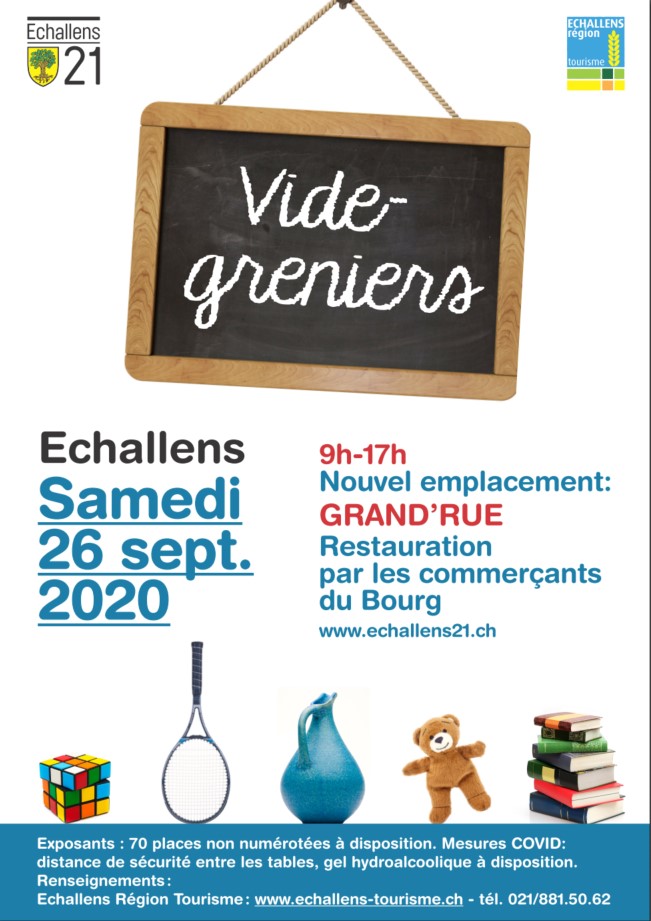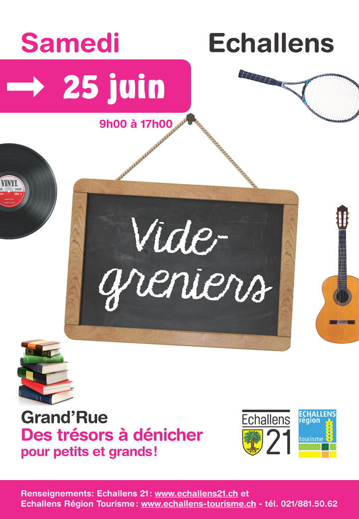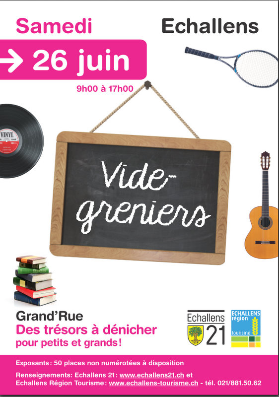 Le 30 juin 2018 aura lieu sur la place du Château le 7ème vide-grenier d’Echallens.